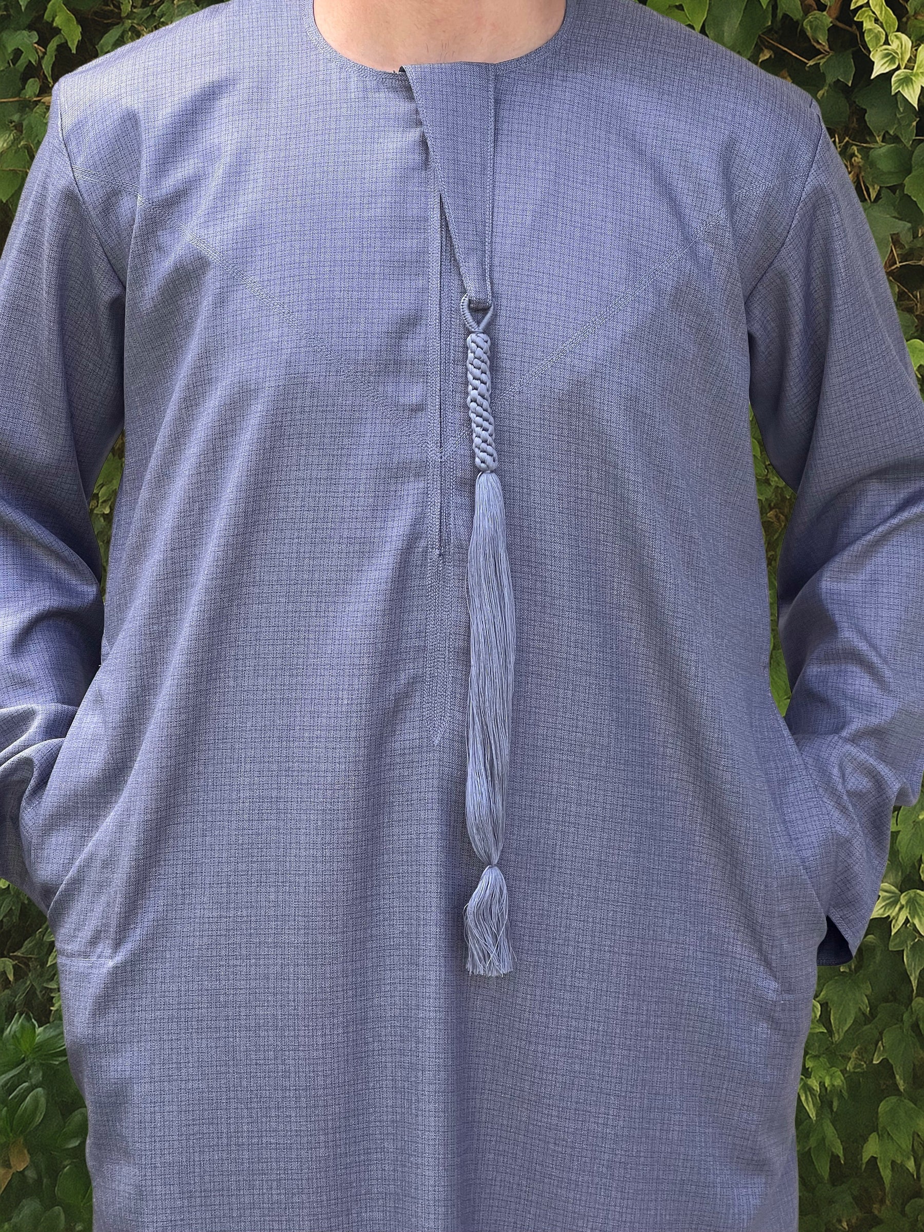 Dove Grey Premium Emirati Thobe – a pinnacle of refinement in traditional attire. Immerse yourself in the allure of this distinct hue, meticulously designed with a round collar and a sleek, modern zip for a contemporary touch.
